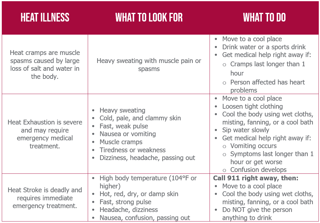 • Learn how to recognize and respond to heat illness.